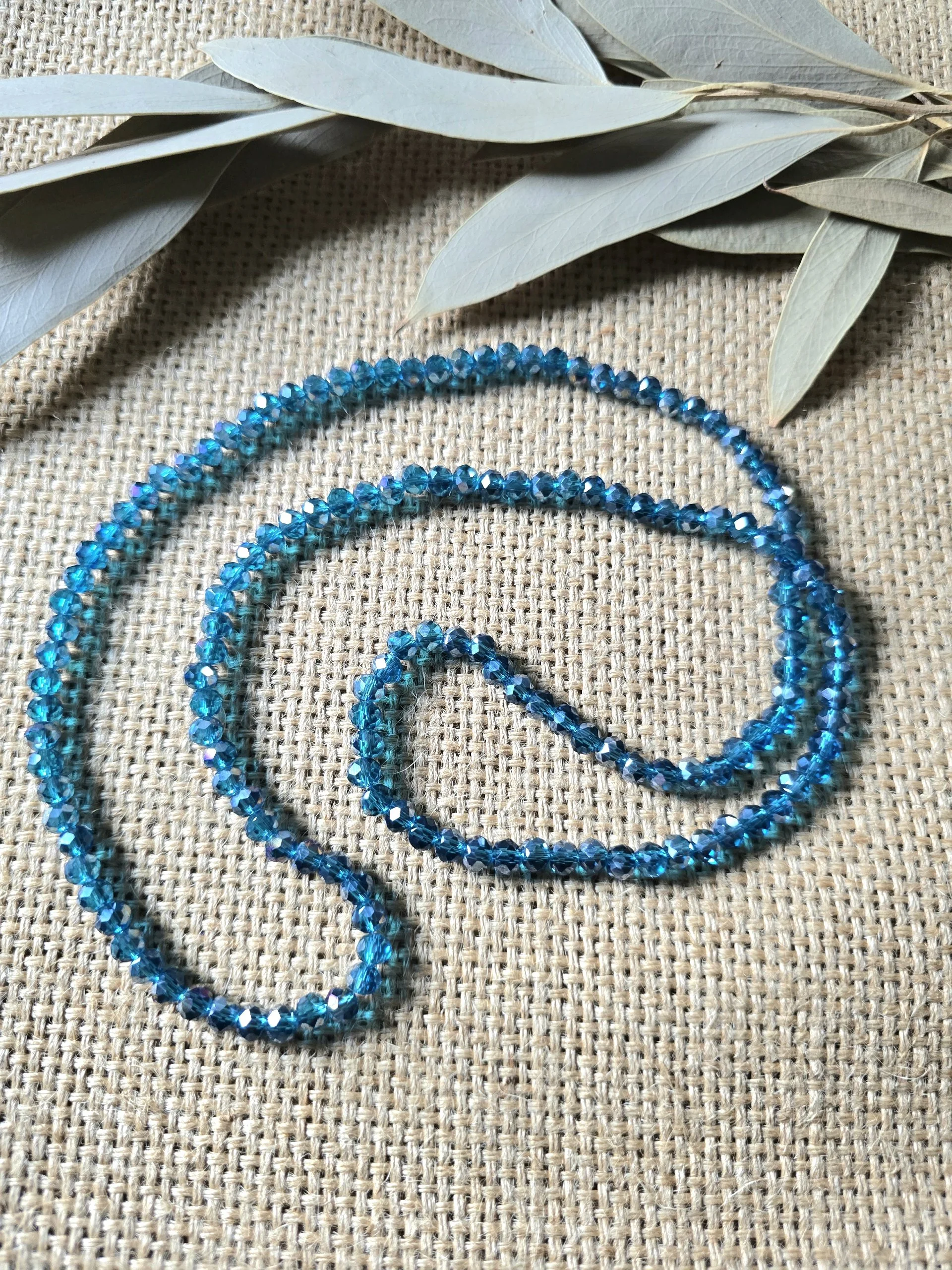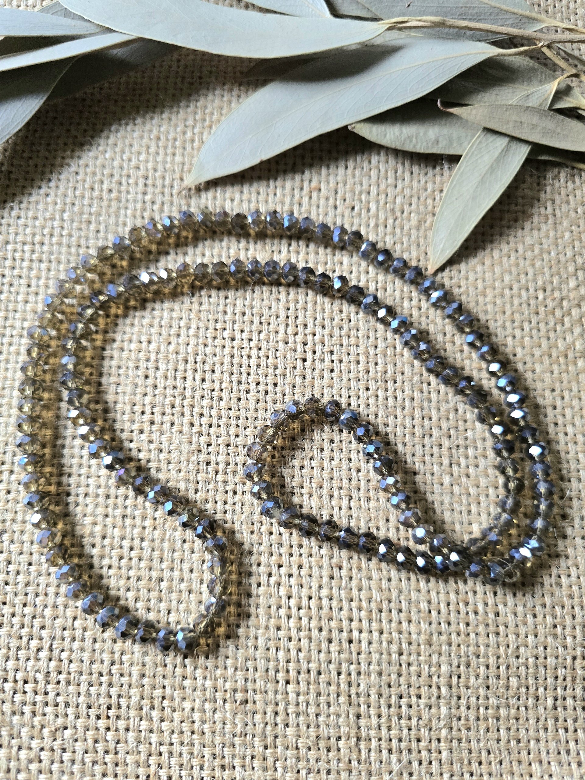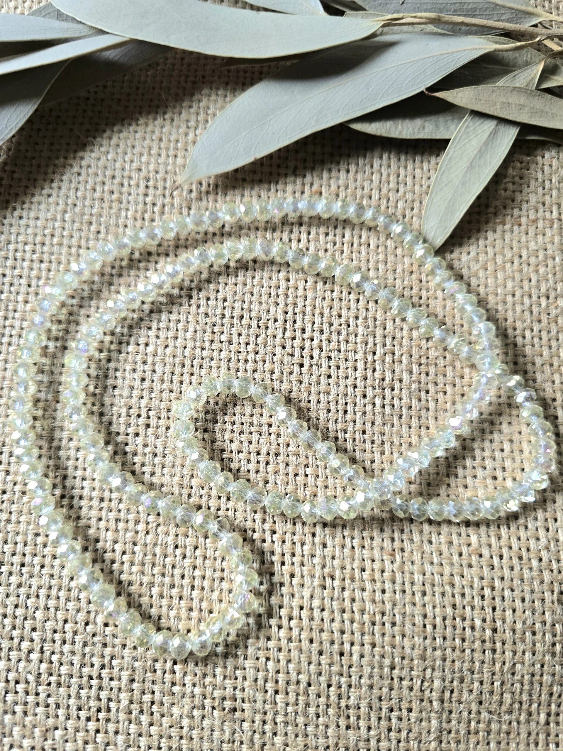 A polished glass crystal beaded necklace with a long, easy-to-wear 30-inch length. Each necklace adds a touch of sparkle without feeling heavy or overly formal, making it a versatile accent for everyday outfits, special occasions, or gift giving.