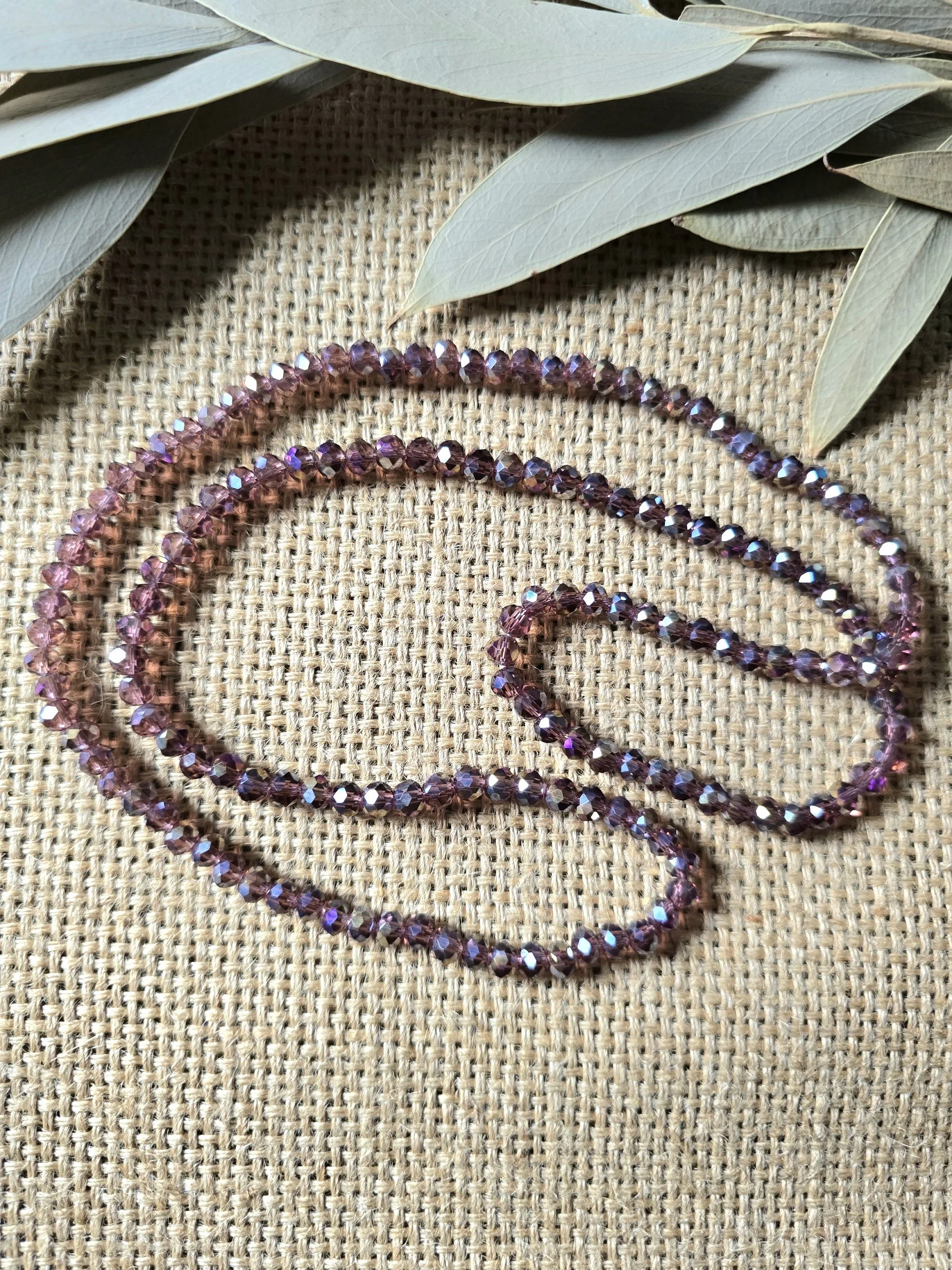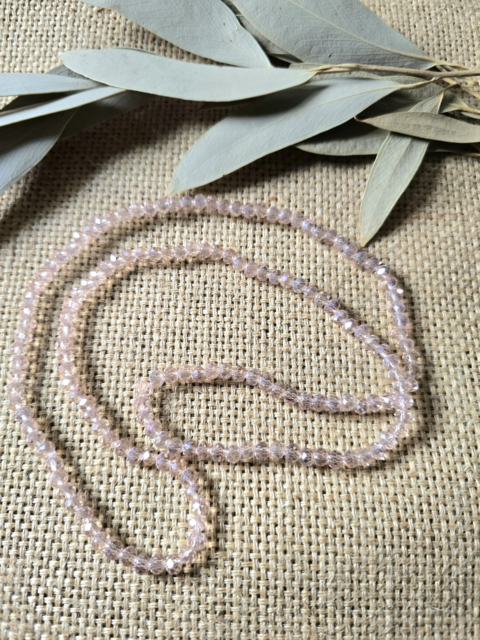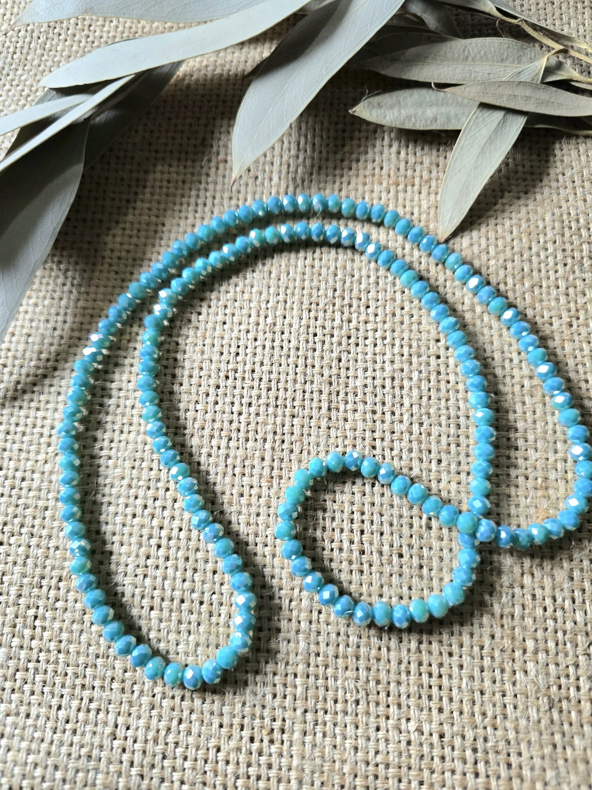 A polished glass crystal beaded necklace with a long, easy-to-wear 30-inch length. Each necklace adds a touch of sparkle without feeling heavy or overly formal, making it a versatile accent for everyday outfits, special occasions, or gift giving.